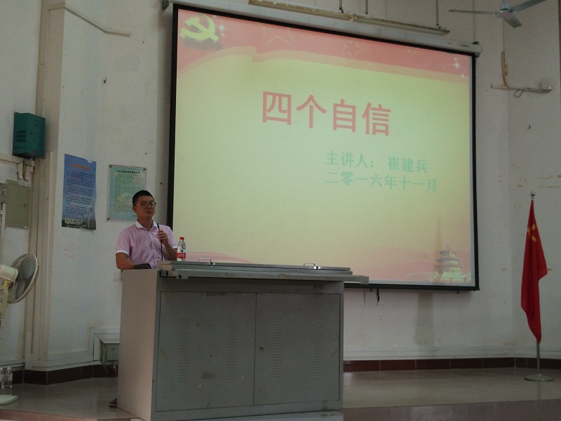 2016年11月5日下午,机电工程学院分党校第二期党员发展对象培训班由崔建兵老师讲授了“四个自信”并组织观看了《榜样》。学院全体党员、党员发展对象、积极分子参加了培训。